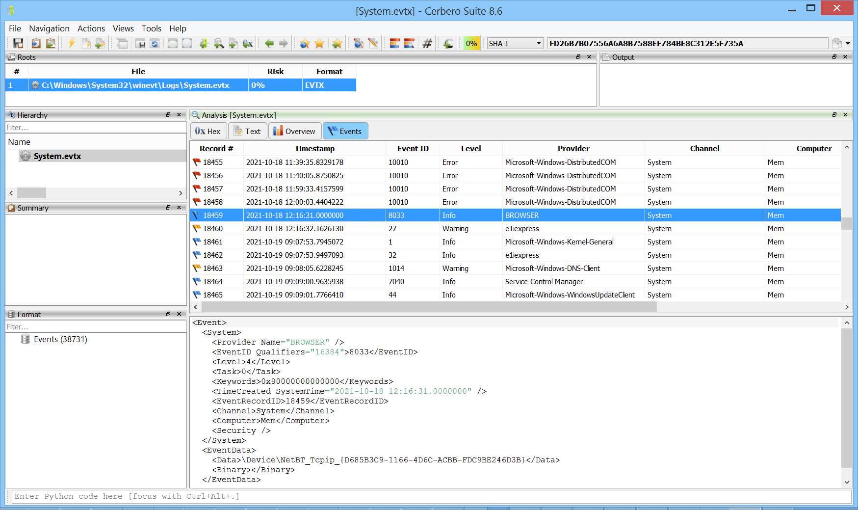 We are happy to announce support for the Windows Event Log (EVTX) format. The new EVTX Format package lets you inspect EVTX files directly within the application, with a familiar table-based event viewer and full XML detail pane.